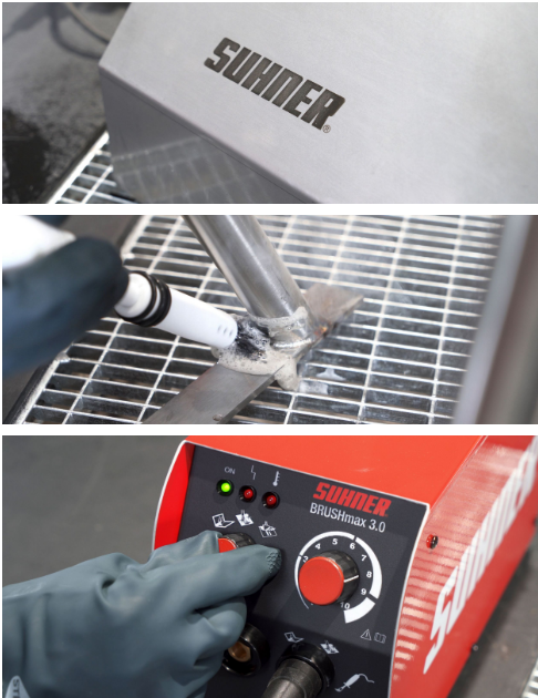Der BRUSHmax 3.0 ist ein sicheres und wirksames Gerät zum Reinigen der Oberflächen von Edelstahl, insbesondere nach dem Schweissen. Er entfernt schnell und einfach die blauen und braunen Eisenoxidflecken, ohne dabei die Oberflächenbeschaffenheit des Metalls zu verändern.